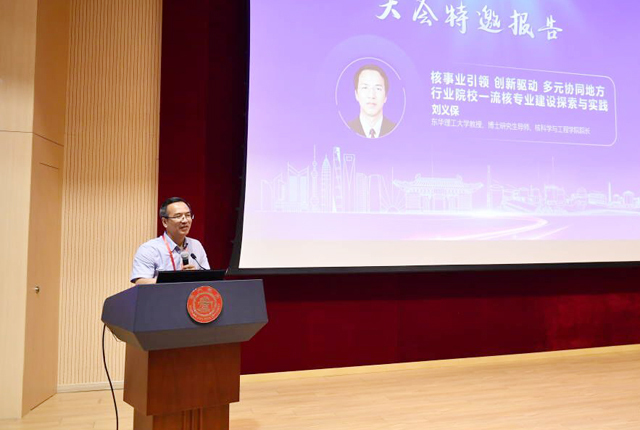 与会专家学者围绕以核工业强国建设助推中国式现代化历史进程、核工业人才培养助推中国式现代化等开展学术研讨交流,分享核领域人才教育与培养的经验做法。刘义保教授在会上作了《核事业引领 创新驱动 多元协同地方行业院校一流核专业建设探索与实践》的大会特邀报告,汇报了东华理工大学核专业建设发展历程和创新举措,特别是我校作为地方行业高校在三个“五年计划”中取得的国家一流核专业、一流课程以及国家教学成果奖等突破性成绩,受到了与会专家的广泛认可。