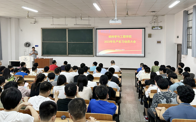 为引导学生做好实习前的各项准备工作,扎实推进专业实习工作有序开展,6月20日下午,核科学与工程学院在三教阶12教室召开了2023年生产实习动员大会。副院长张怀强出席并做动员讲话。核工系、核化工系负责人、全体实习带队教师和2020级150余名实习学生参加会议。会议由实验实习中心主任魏强林主持。
