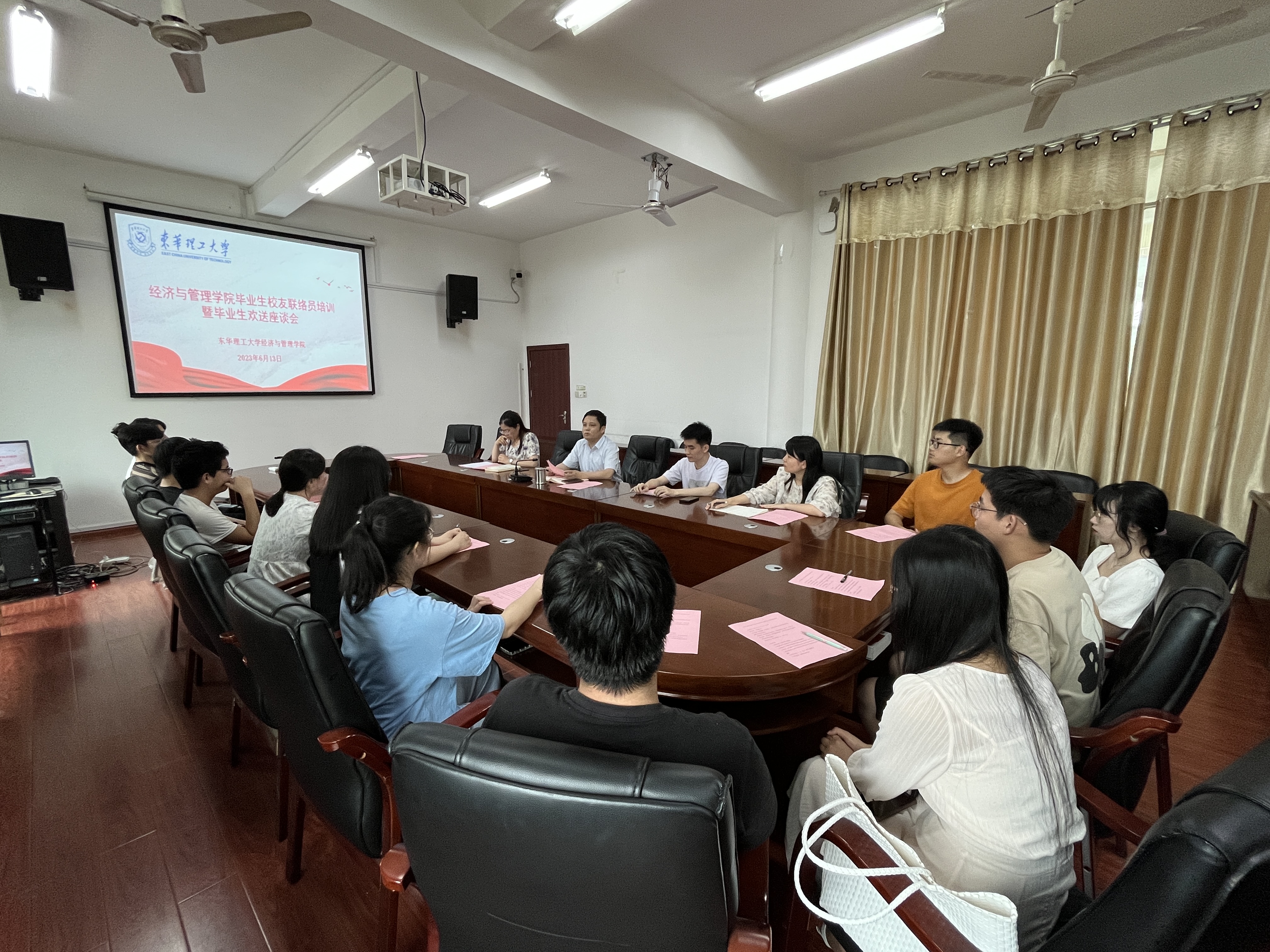 2023年6月13日下午,经济与管理学院于经管楼302会议室成功举办毕业生校友联络员培训暨毕业生代表座谈会。学院党委书记徐步朝、党委副书记邓红珍、校友工作联络员闻忠旗、毕业班辅导员杨梦园、2023届毕业生校友联络员及毕业生代表参加会议。