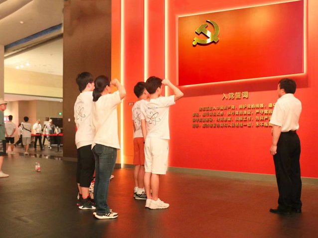 活动中,全体同志来到嘉兴南湖革命纪念馆进行参观学习,认真聆听讲解员的解说,驻足细观书籍、照片、遗物、影像等珍贵史料,追寻革命领袖的历史足迹,缅怀革命先烈的丰功伟业,感受那热血沸腾的年代。在南湖革命纪念馆三楼宣誓角,在余斌同志的带领下,全体党员面向鲜红的党旗庄严地举起右手,新发展的党员进行入党宣誓,老党员重温入党誓词,以铿锵有力的宣誓声,表达不忘初心、砥砺奋进的信念和决心。