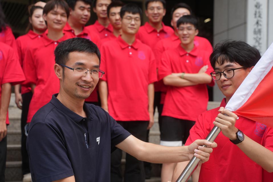 会议结束后,成员们移至新实验大楼门口,张晓平向出征队伍授旗,并与全体成员合影留念。