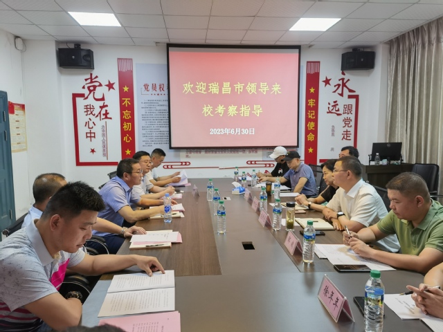 6月30日瑞昌市副市长柯愫君、凌明星,瑞昌市体育总会会长吴拥军,瑞昌市体育局局长邹斌一行到我院调研交流并在学院一楼会议室召开座谈会院党委书记张明,院党委副书记、院长李风雷,校科技处副处长何小芊参加座谈会。会议由何小芊主持。