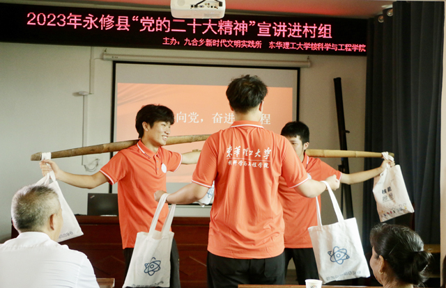 为了让理论宣讲与惠民服务、文化生活、情景体验、情感交流深度融合,九合乡党委政府主动作为,与东华理工大学核工学院联合开展暑期“三下乡”活动,充分发挥高校的人才资源和智力优势,助推党的创新理论在基层落地生根、开花结果,做到既打通思想理论传播地理上、物理上的“最后一公里”,又打通心理上、道理上的“最后一公里”。