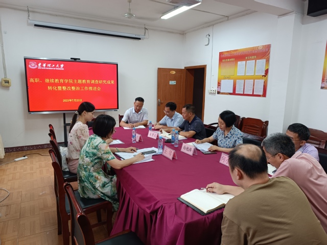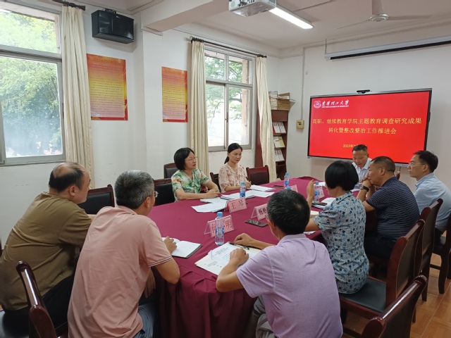 7月23日上午,高职、继教学院召开主题教育调研成果转化暨整改整治工作推进会。校党委委派校纪委委员王琴带队指导。会议由院党委书记杨艳萍主持,学院党委班子成员、科级干部、党支部书记、教师党员代表出席会议。