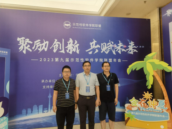 2023年8月8日,由示范性软件学院联盟主办的“2023第九届示范性软件学院联盟年会”在海南省海口市召开。本次会议旨在进一步推进示范性软件学院的建设与发展,推动软件工程一流专业建设,准确把握软件工程学科发展和专业人才培养的新形势新要求,深化产教融合,提高专业人才培养质量,研究和探讨特色化示范性软件学院的发展路径和培养模式。软件学院副院长李祥、张军及软件工程系主任高永平应邀参加了本次会议。