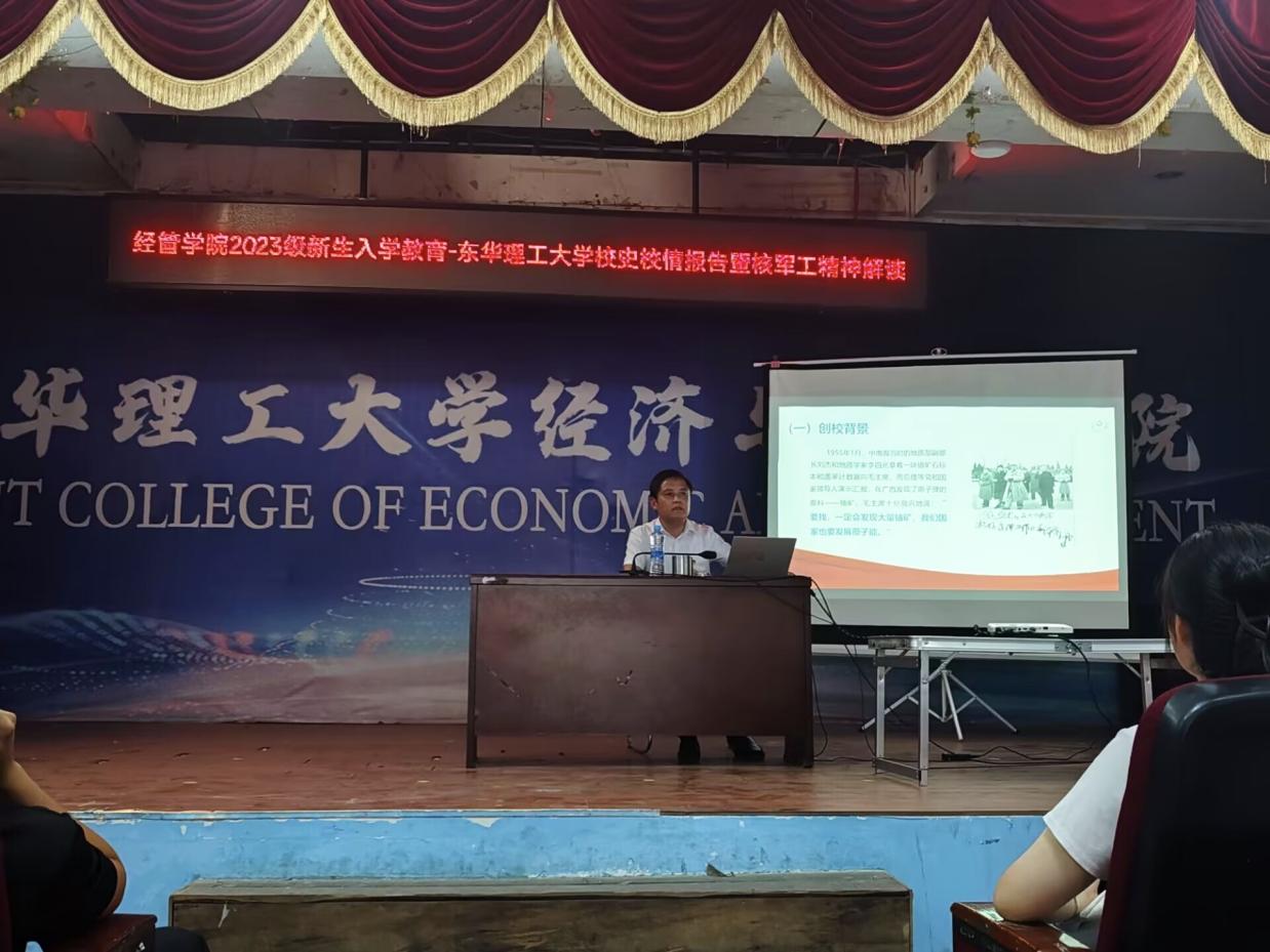 为引导大学生扣好“人生第一粒扣子”,学党史、悟初心、知校情,传承和弘扬核军工精神,9月5日起,经济与管理学院于经管楼小礼堂开展了为期四天的新生入学教育,开学第一课由学院党委书记徐步朝讲授。