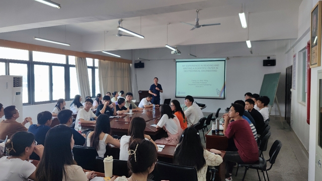 林城教授结合其自身的留学及海外工作经历,介绍了加拿大维多利亚大学的基本情况,并通过结合其在岩土工程领域取得的科研成果,围绕科技论文的撰写,详细介绍了科研文献的阅读、管理技巧,就论文撰写和投稿过程的细节问题开展了全面介绍。