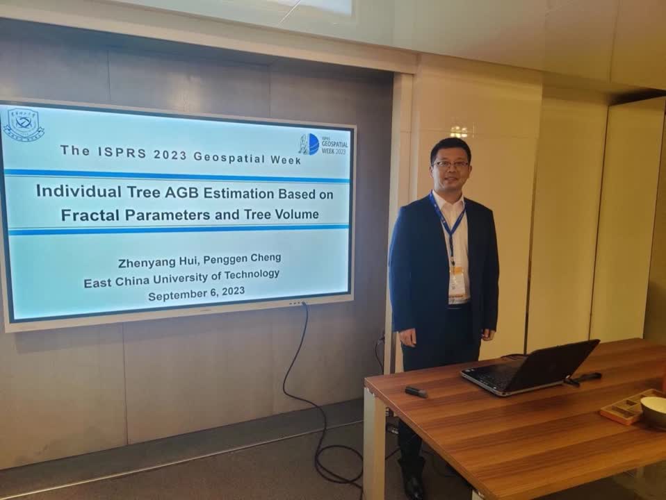 惠振阳在“Laser Scanning 2023: Forestry”分会场做了题为“Individual Tree AGB Estimation Based on Fractal Parameters and Tree Volume”的报告,报告阐述了分形几何理论的原理,介绍了分形几何理论在树种识别、生物量估测、单木模型构建等方面的应用潜力,报告受到了与会专家的一致好评。