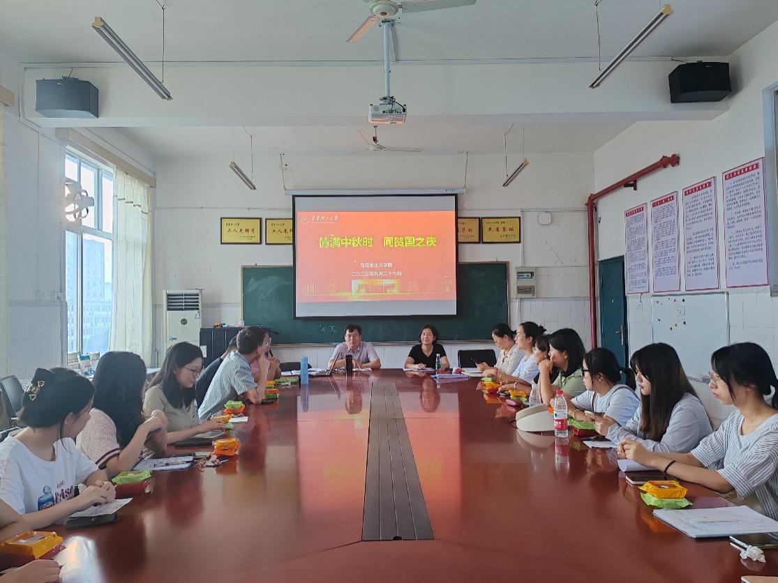 9月27日下午,马克思主义学院举办“情满中秋时 同贺国之庆”师生座谈会。学院党政领导、硕士研究生导师代表以及2023级全体硕士研究生参加座谈。