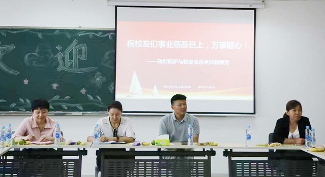 随后,校友们来到核工楼1216会议室与昔日的老师们围坐在一起座谈交流。李小燕代表学院党委、行政致欢迎词,并从“学校概述、学院简介、系部现状”等三个方面介绍了核科学与工程学院的基本情况及近年来取得的重要成就。她表示,学院高度重视校友工作,千方百计加强学院与校友、校友与校友之间的联系、交流与合作,希望校友们一如既往地对学院的发展建设给予关心帮助、出谋划策、大力支持。