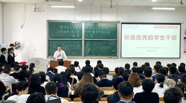 余斌首先向学院2023-2024学年团学组织、团支部(班级)新晋学生干部表示热烈的欢迎和美好的祝愿,希望同学们正确看待学生干部身份,端正工作作风,严格要求自己,努力成为一名优秀学生干部,为学院发展建设贡献青春力量。随后,余斌作了题为“做最优秀的学生干部”专题报告,结合自身发展经历,旁征博引地讲解了“学生干部应具备的素质”和“怎么做好一个学生干部”,着重强调了思想道德素质对于学生干部工作的重要意义和关键作用,并寄语青年学子成为一名“懂团结、会团结、真团结”的学生干部。
