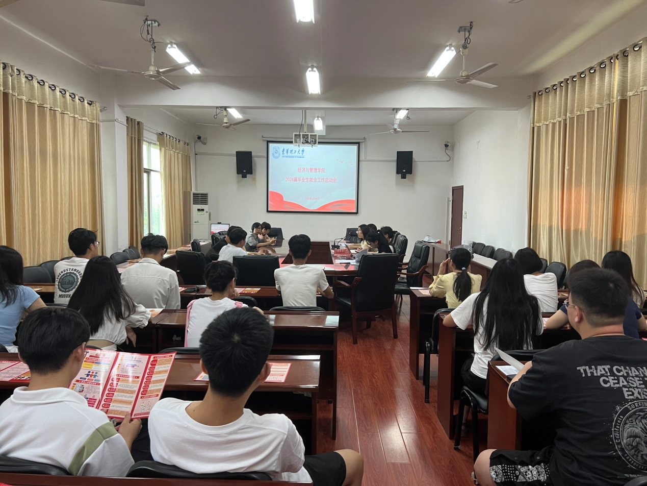 为做好2024届毕业生就业工作,帮助毕业生了解就业政策, 9月26日,经管学院召开2024届毕业生就业工作启动会。学院党委副书记邓红珍、保卫处征兵工作负责人卢航、学团办公室负责人易松、就业秘书、毕业班班主任及辅导员、毕业班团支书和班长参加会议。会议由毕业班辅导员兼就业秘书朱婷主持。