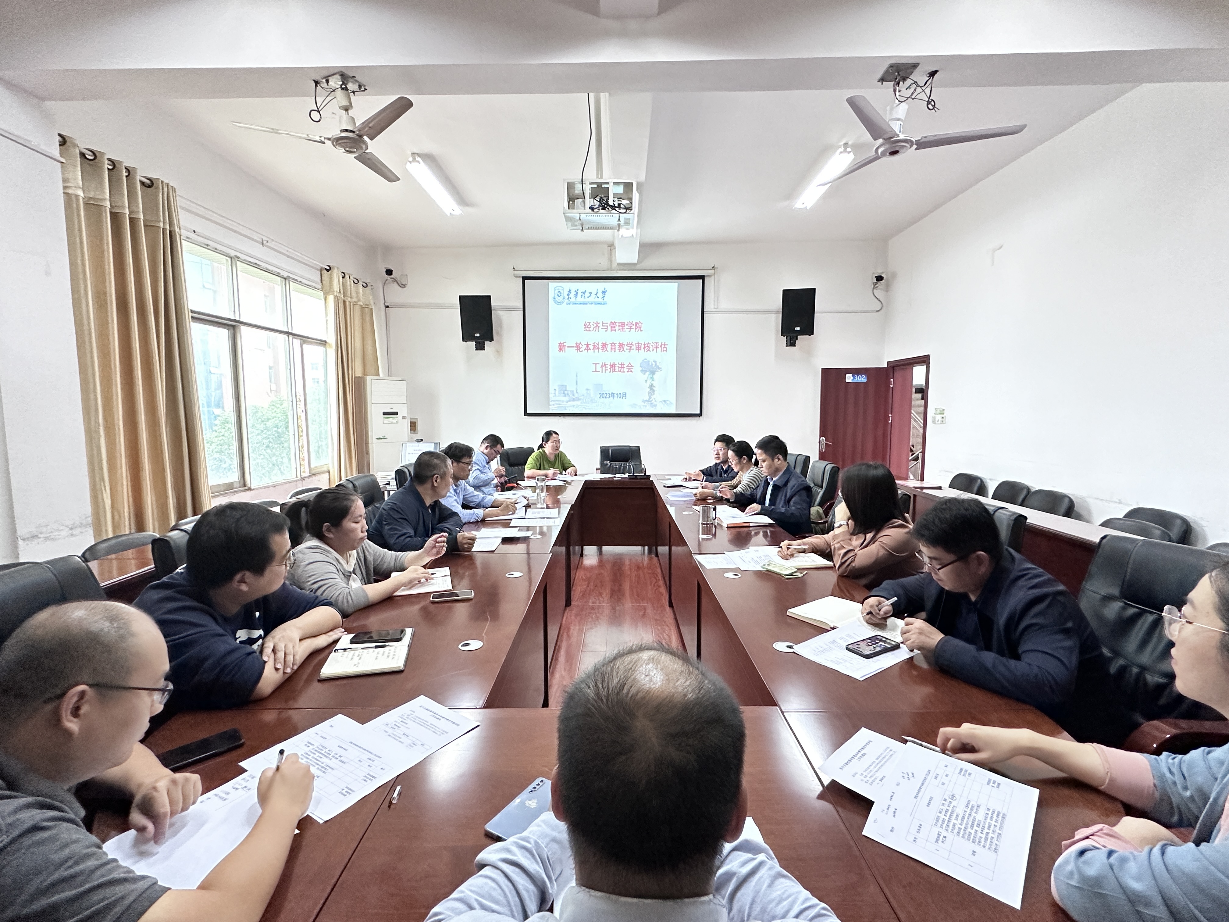 为落实立德树人根本任务,扎实推进新一轮本科教育教学审核评估工作,10月12日下午,经济与管理学院在经管楼302会议室召开本科教育教学审核评估工作推进会,学院党委书记徐步朝、副书记邓红珍、副院长赵玉、系主任、科室负责人参加会议,会议由副院长罗志红主持。