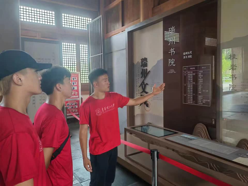 紧接着,实践队来到高安市瑞州衙门参观,这里历史悠久,风景如画,红木青瓦间,一座座亭台楼阁就是对古瑞州府衙的还原,在重现府衙辉煌中延续瑞州文韵。