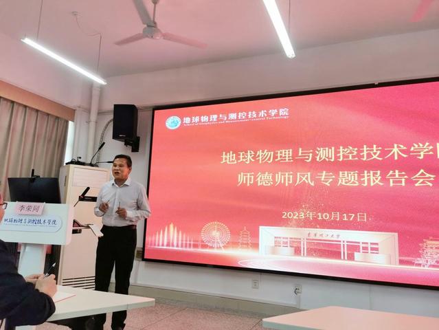 10月17日下午,地控学院在地学楼A509举办了师德师风专题报告会,会议特邀“全国模范教师”“第三届感动江西教育年度人物”李荣同教授担任主讲人。报告会由学院党委书记黄合湘主持,学院全体教师参加了此次报告会。