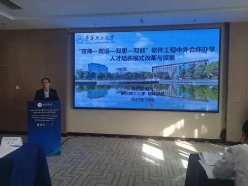 在“党建和学生全面发展的探索与思考”分论坛上,徐洪珍副院长结合学院软件工程中外合作办学实践,做了“‘双师—双语—双思—双能’软件工程中外合作办学人才培养模式改革与探索”主题报告,分享了我校在软件工程中外合作办学项目在人才培养方面的经验、成效以及今后的发展规划。