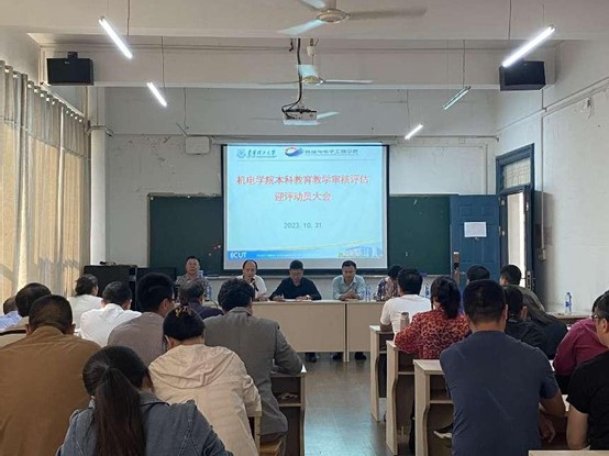 10月31日下午,机电学院在机电楼409会议室召开本科教育教学审核评估迎评动员大会,院长王可、院党委书记徐鹏程、副院长陈志新、李跃忠、副书记邓文娟以及全体教职工参加会议,迎评动员会由副院长陈志新主持。