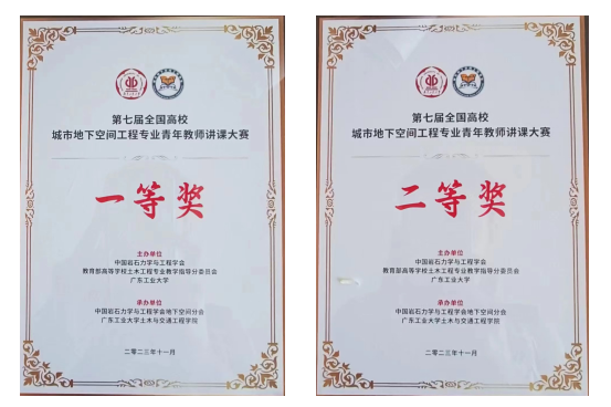 2023年10月24日-26日,我院城市地下空间工程系教师张敏思副教授、雷乐乐博士赛前在学院和岩土与地下工程系的充分指导帮助下,精心准备、全力以赴,凭借清晰流畅的教学思路和精美优秀的课程设计,在第七届高校城市地下空间工程专业青年教师讲课大赛中,从众多选手中脱颖而出,最终分别荣获全国一、二等奖的佳绩。我院钱七虎班、城市地下空间工程专业本科生李志勇、郭梓涵、孙志强、谌龙、廖思静、李有权在谢胜军副教授、张博讲师指导下,分别获得第七届高校城市地下空间工程专业大学生模型设计竞赛二等奖、三等奖成绩。