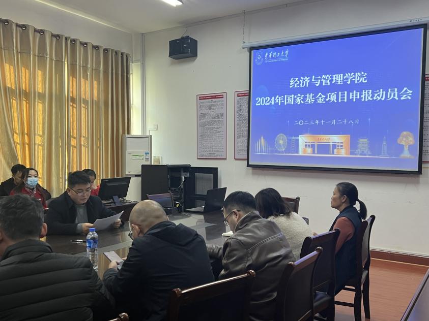 2023年11月28日下午,经济与管理学院在经管楼309召开了2024年国家基金申报动员会,副院长赵玉主持并作动员讲话,各系部符合申报条件的20余位教师参加了会议。