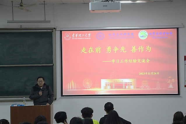 为深入学习贯彻习近平新时代中国特色社会主义思想和习近平总书记考察江西重要讲话精神,发扬优良学风,凝聚奋进力量,化学与材料学院/化学爱好者协会于11月24日举办了以“走在前,勇争先,善作为”为主题的学生学习工作经验交流会,150余名本科生参加。会议由化学爱好者协会指导老师、应用化学系教师王博主持。