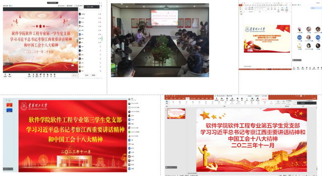 近日,软件学院各党支部认真落实校党委部署和学院党委工作要求,掀起学习宣传贯彻习近平总书记考察江西重要讲话精神和中国工会十八大精神的热潮。