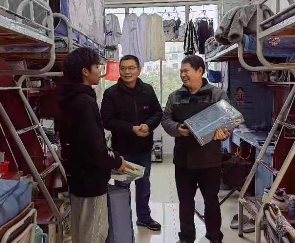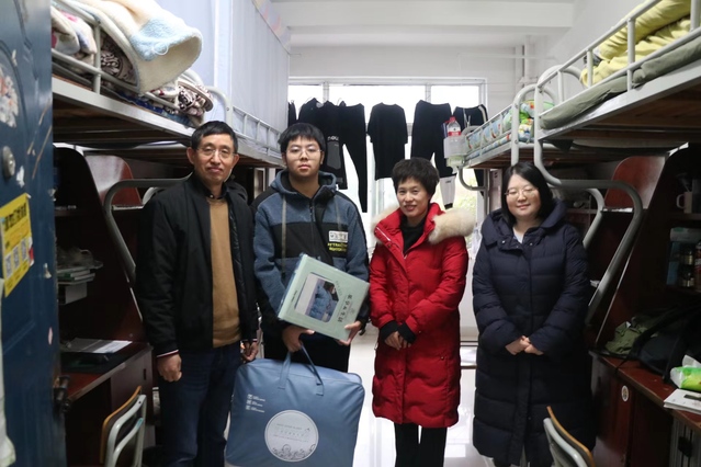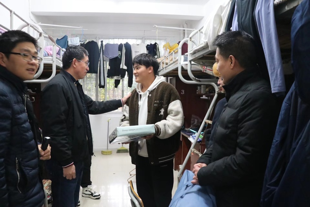 走访中,学院领导与同学们亲切交谈,仔细询问同学们的学业情况、生活情况,及时了解同学们的实际困难,并贴心叮嘱同学们天气寒冷,注意防寒保暖,加强体育锻炼,以良好的身体状态迎接期末考试。天气虽寒,但一声声叮咛,一床床棉被,每一份善意都传递着学院的温情。同学们纷纷表示,将克服学习生活中的困难,努力成长成才,以实际行动回报老师的关心关爱。