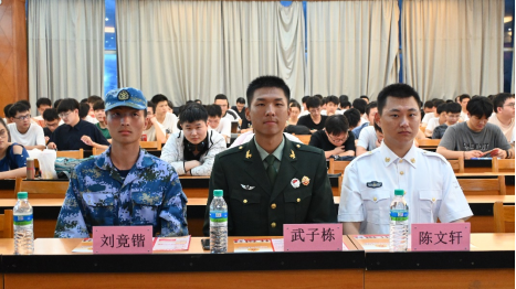 随后,三名退役军人分别为同学们介绍了陆军、武警和海军三个军种,通过图片、视频等方式向同学们展示了军旅生活,介绍了军队的基本架构,给大家分享自己在军队中经历的奇闻趣事。其中,武子栋结合当代毕业生就业情况及薪资待遇,介绍了士兵津贴,鼓励广大青年深入了解,积极参军;刘竟铠分享了军营中收获的难忘的兄弟情谊,鼓舞大家进入军营;陈文轩则展示了海军见识到的独特美景,表达了在岛礁上守卫祖国边疆的自豪。