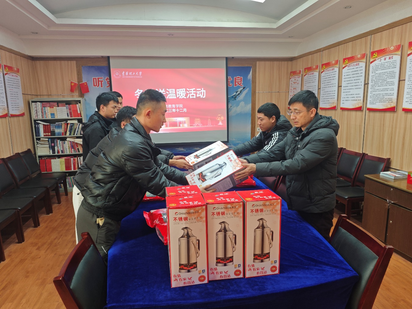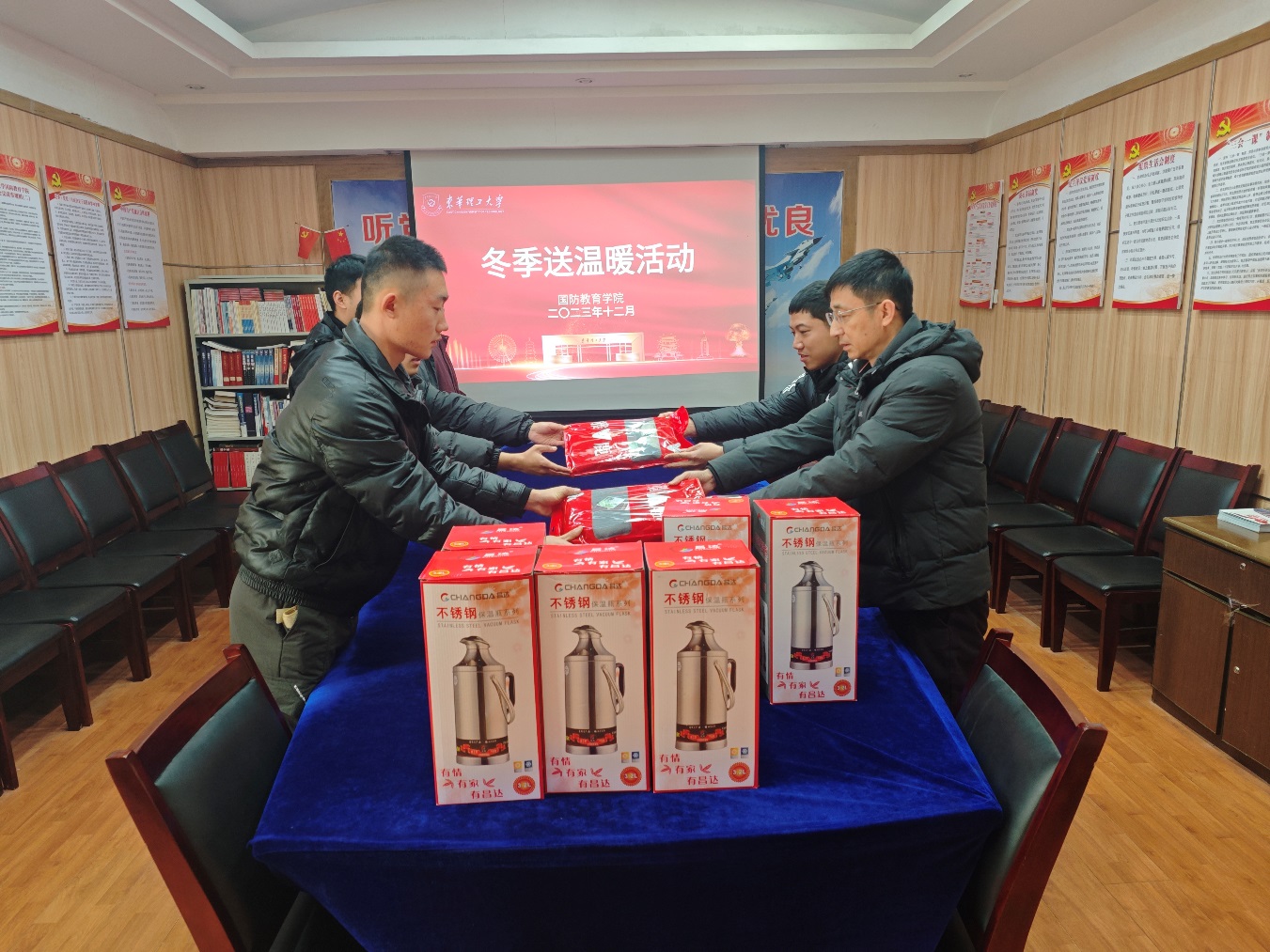 为充分落实学生资助政策,切实帮助学生解决实际困难,确保学生能够安心学习训练、温暖过冬。12月11日,国防教育学院开展冬季送温暖活动,为22和23中队在校家庭经济困难学生送上了保暖内衣、热水瓶等生活用品,让他们在这个寒冷的冬天感受到学院的温暖。