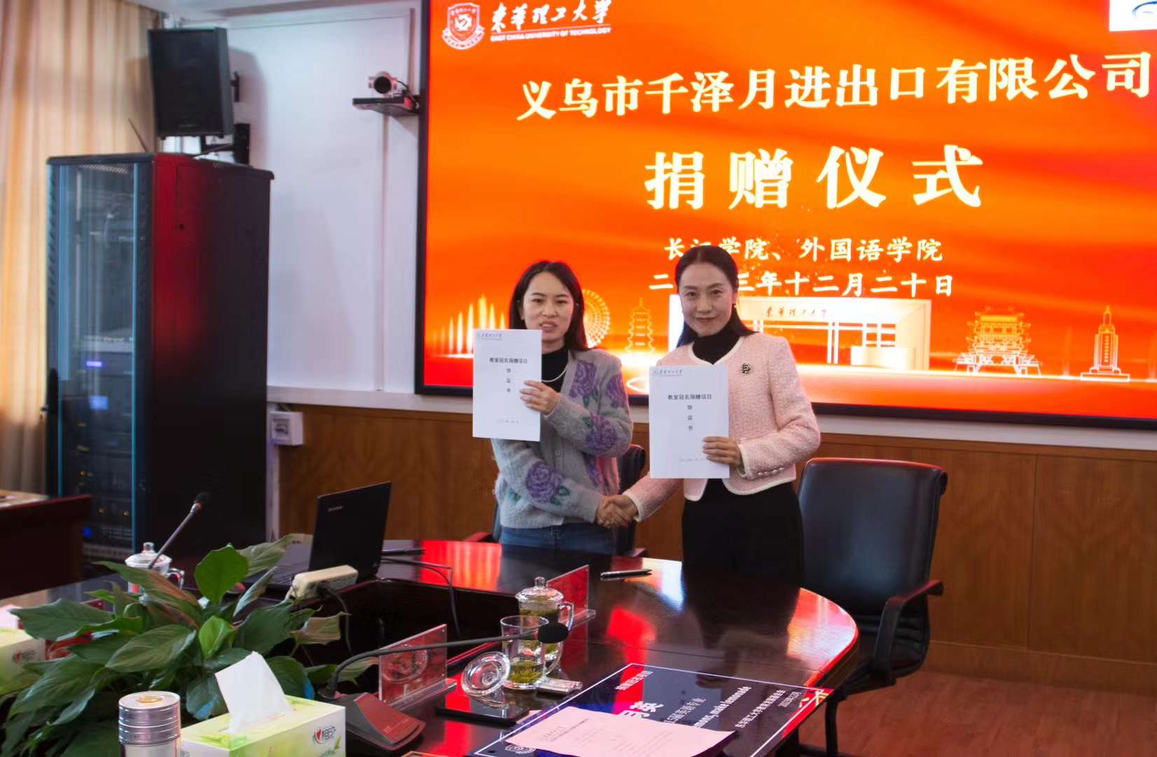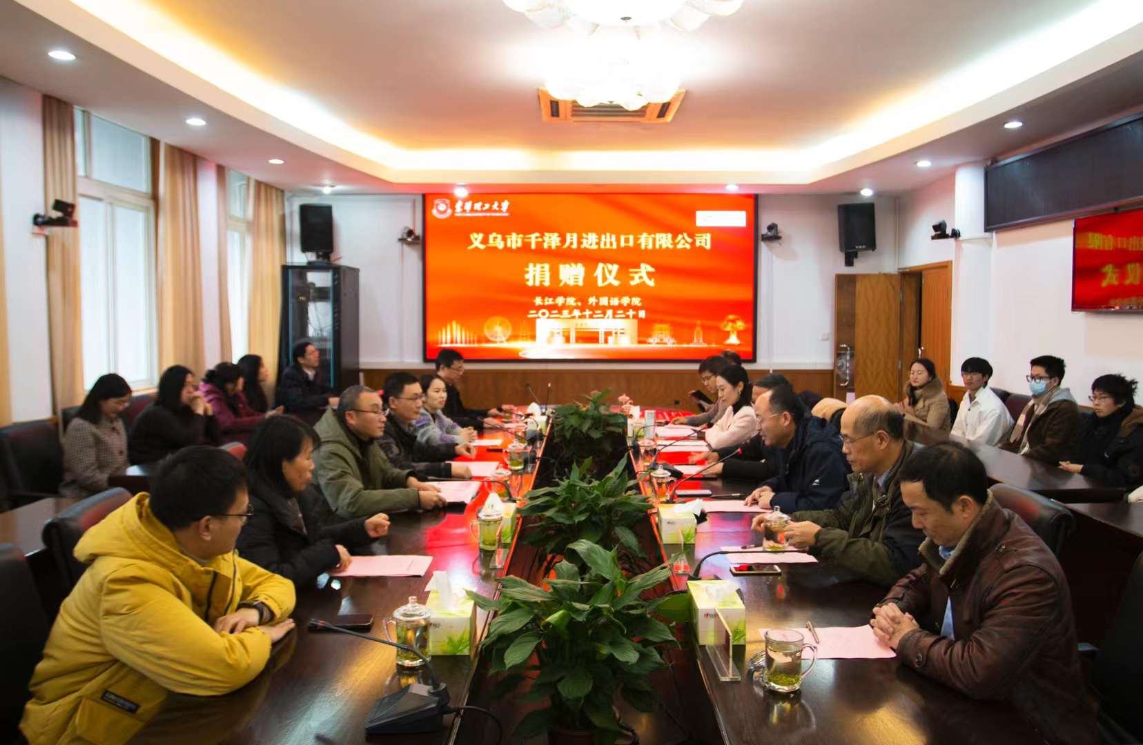 12月20日上午,抚州校区三楼会议室隆重举行长江学院2015届英语专业校友、义乌市千泽月进出口有限公司董事长罗月英捐赠仪式。抚州校区党工委副书记、管委会副主任任强、长江学院党委书记江雁飞、国内合作与交流中心副主任周艺玮、长江学院党委副书记陈凌、外国语学院党委副书记杨林以及师生代表50余人参加捐赠仪式。仪式由任强主持。