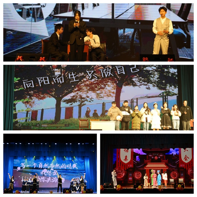 晚会在新年祝福视频中拉开帷幕,学院老师们为大家送上了诚挚的新年祝福,为现场营造了温馨和谐的欢乐氛围。带着老师们的美好祝福,大家一齐进入元旦奇妙夜的美好旅程。晚会共有12个精彩纷呈的节目,涵盖歌曲、舞蹈、朗诵、配音、小品和话剧等。朗诵《强国有我,青春担当》、歌曲串烧《红韵笙笙不息》和话剧《觉醒吧,青年》以其激昂声音和表演,传递了青年学子对理想信念的坚定和执着,共同表达对祖国的热爱和为实现中华民族伟大复兴而努力奋斗的决心。小品《反诈风波》、心理情景剧《向阳而生》则紧紧围绕大学生学习和生活,以幽默、真实和感人的表演征服了在场观众,让同学们在欢声笑语中提高反诈意识和培养积极健康心态。