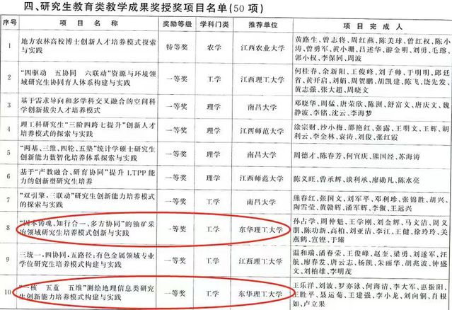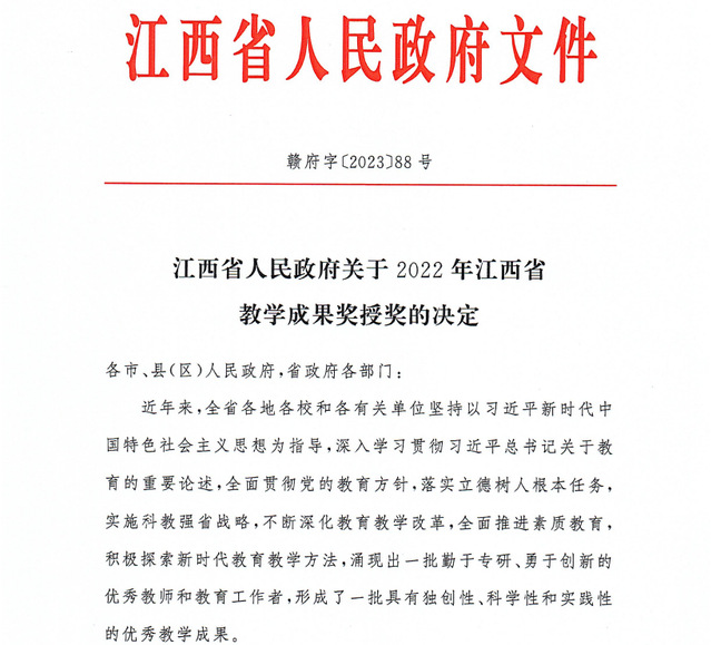 省级研究生教育类教学成果奖是江西省教育厅为表彰研究生教育教学领域的先进典型,是对学校研究生培养工作和教育教学改革成果的检阅和展示。