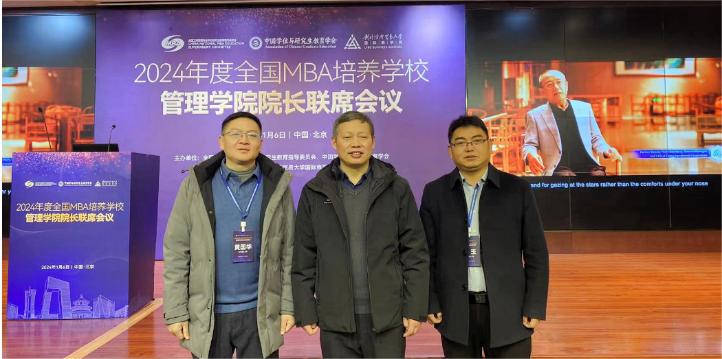 1月6日,2024年度全国MBA培养学校管理学院院长联席会议在对外经济贸易大学顺利举行。本次会议由全国工商管理专业学位研究生教育指导委员会(全国MBA教指委)与中国学位与研究生学会主办。教育部学位管理与研究生教育司(国务院学位委员会办公室)一级巡视员唐继卫、教育部学位与研究生教育发展中心副主任亓彦伟出席会议并讲话。我校副校长熊国保教授带队参加了本次会议。