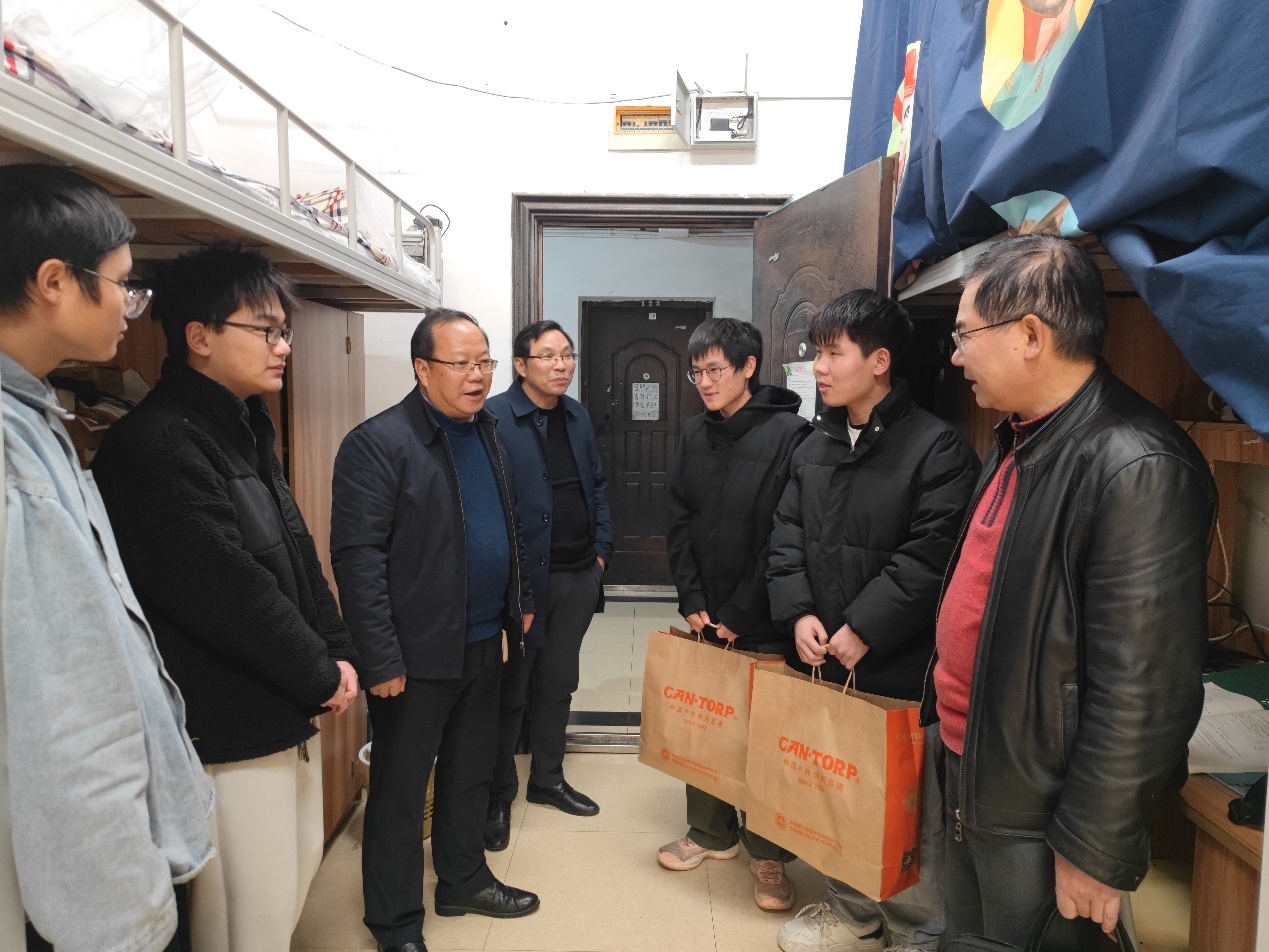 2024年1月10日,校党委常委、副校长夏菲走访信息工程学院学生宿舍,给困难学生送去了温暖和关爱。信息工程学院党委书记许志文、副院长李祥陪同前往。