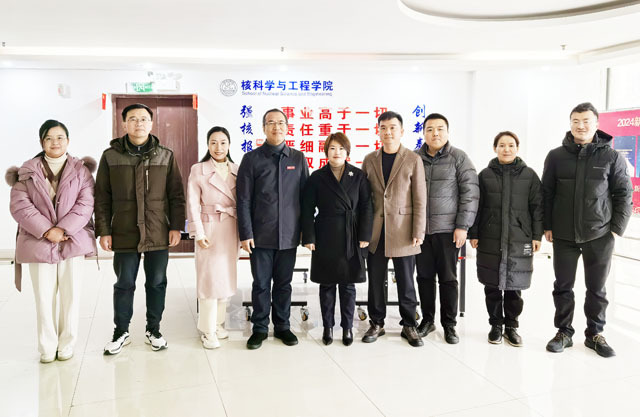 刘义保首先致欢迎词,对章明金一行在这大雪纷飞的冬季驱车千里来校为核学科专业捐赠6万元奖学金、洽谈校企合作表示欢迎和感谢,并简要介绍了学校的办学历程和核工学院在核学科专业建设、科研创新、人才培养等方面取得的成绩。他指出,百年大计教育为本,核科学与工程学院教育事业发展取得的良好成就,离不开学校领导的关心支持和行业系统、社会各界的鼎力相助。他表示,安徽钱洪环保科技有限公司与核工学院开展合作交流,是校企双方在科学研究、人才培养理念上的共识,希望今后在深化交流合作、促进强强联手中实现共赢发展。