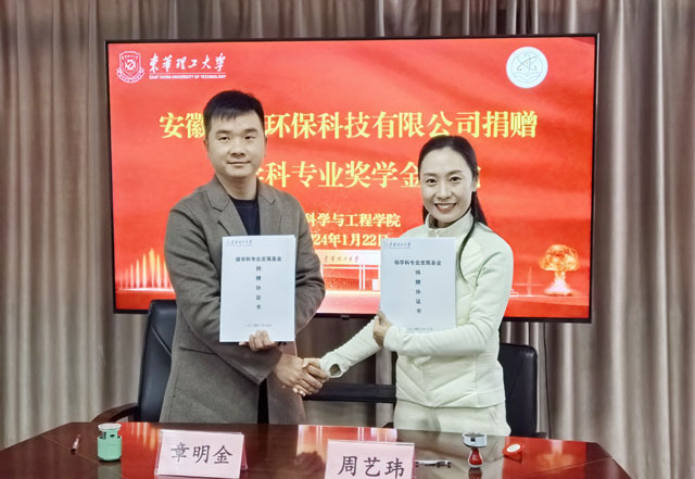 1月22日,安徽钱洪环保科技有限公司捐赠核学科专业奖学金仪式在核工楼1213会议室举行,安徽钱洪环保科技有限公司总经理章明金、副总经理李丁丁、技术总监范加林,学校国内合作与交流中心副主任周艺玮,核科学与工程学院党委书记余斌、院长刘义保、副书记刘顺祥、副院长李小燕,以及各系、相关科室负责人和教师代表参加了仪式。仪式由刘顺祥主持。