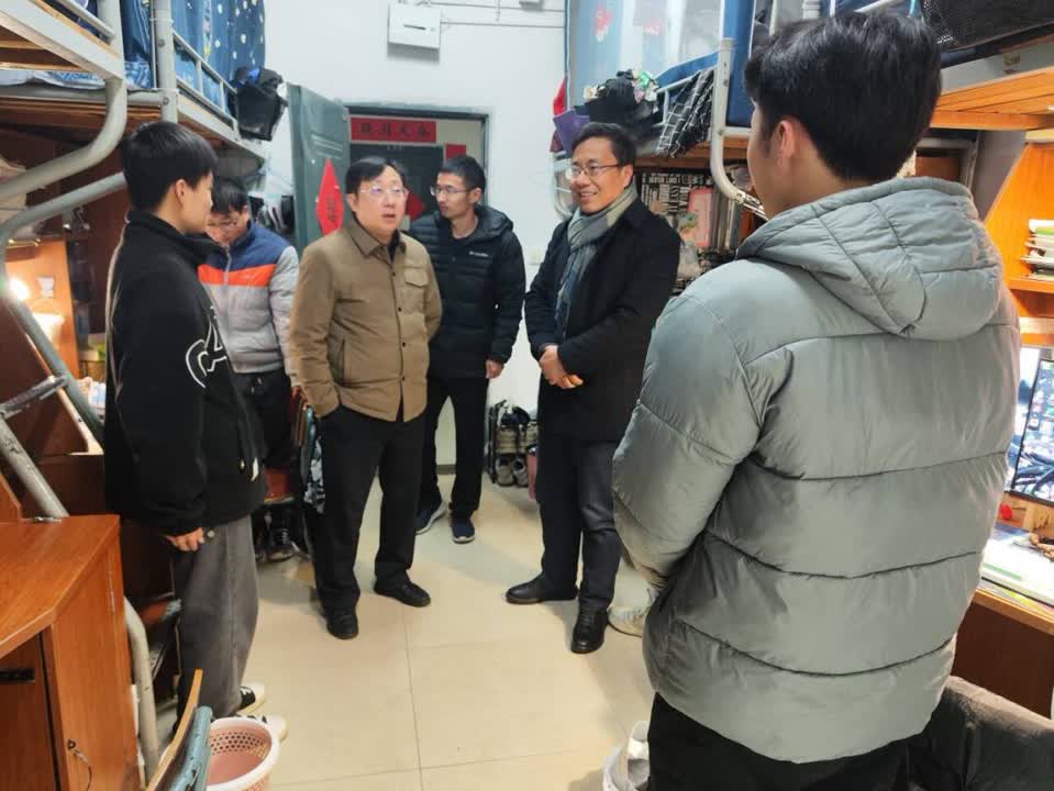 2024年2月25日下午,测绘与空间信息工程学院院长陈文波、党委书记鲁铁定、党委副书记张晓平带领全体班主任、辅导员一起深入学生宿舍开展安全大检查,提醒同学们做好宿舍用电安全,注意宿舍公共卫生,严守校规校纪,提高自身安全防范意识,共同守护和谐平安校园。