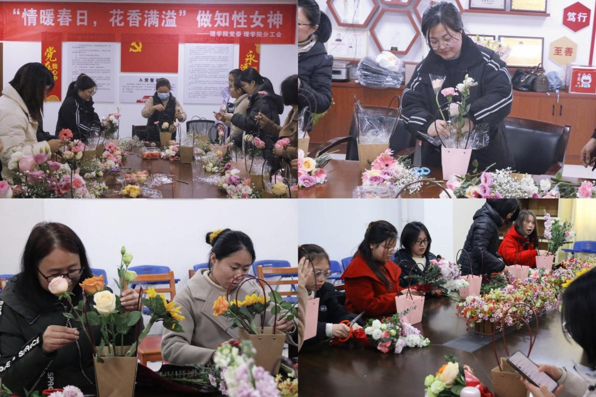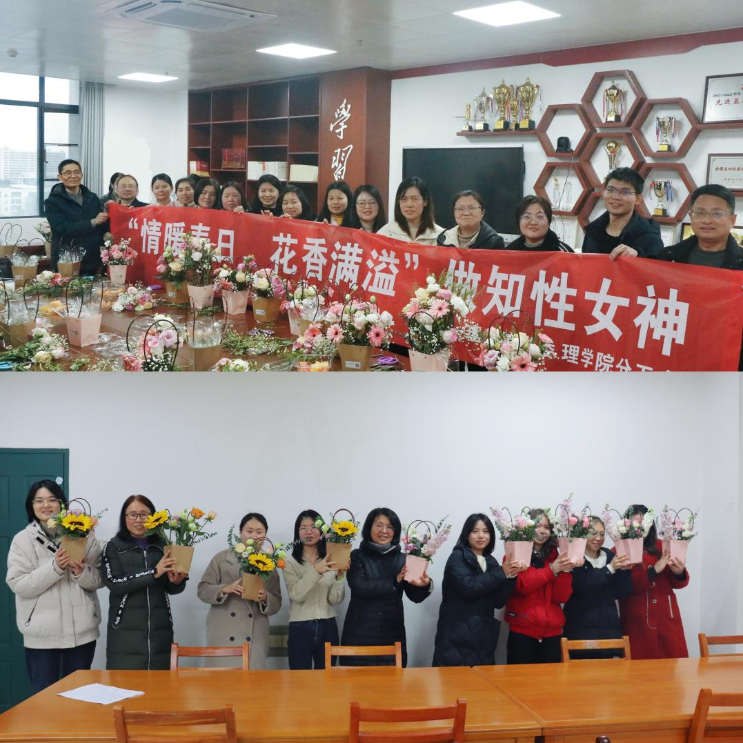 春醒桃花开,听雨燕归来。为更好地丰富理学院女职工精神文化生活,活跃学院文化氛围,陶冶职工情操,庆祝“三八”国际妇女节,3月5日,理学院工会在南昌校区实验楼806和抚州校区801举办了“情暖春日,花香满溢”中国传统艺术插花体验活动。学院39名女教工参与体验。