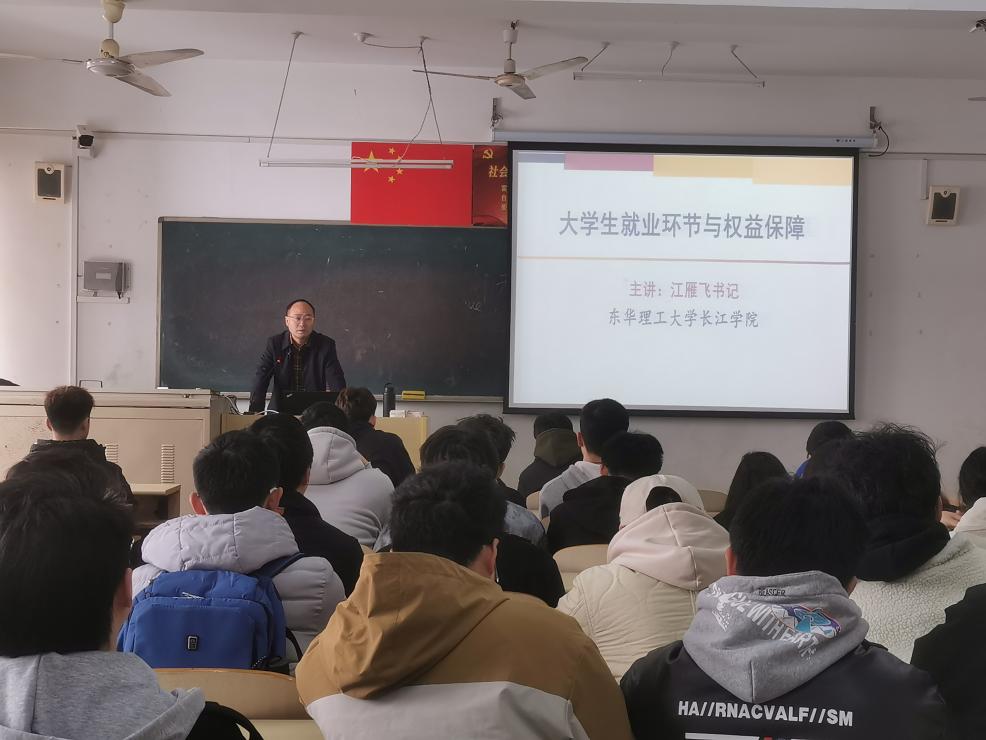 为深入贯彻党中央、国务院决策部署,推动落实高校毕业生就业工作“一把手工程”,全力促进2024届毕业生更加充分高质量就业,3月7日,学院开展第一期“书记校长话就业”活动,院学院党委书记江雁飞围绕就业权益保障,讲授了一堂深入浅出的就业指导课。各系毕业生共百余人参加了此次专题讲座。