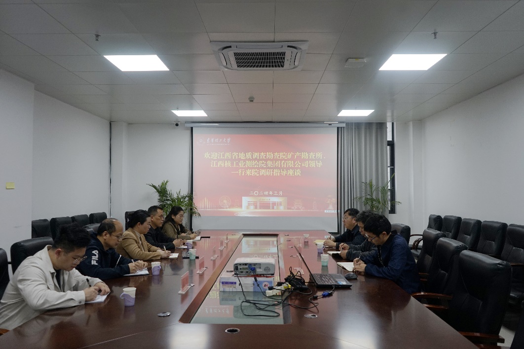 2024年3月27日,江西省地质调查勘查院矿产勘查所副所长涂梨平一行来院交流。交流座谈会在新实验大楼1320召开,测绘与空间信息工程学院院长陈文波、党委书记鲁铁定出席会议。会议由陈文波主持,相关教师代表参加会议。