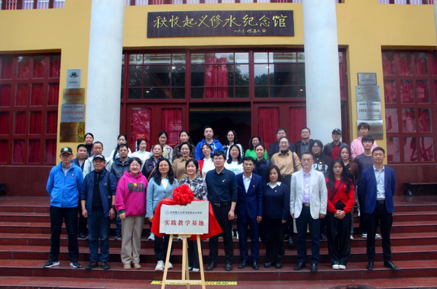在秋收起义纪念馆展厅,学院举行教学实践基地挂牌仪式,向革命烈士敬献花篮,并重温入党誓词。