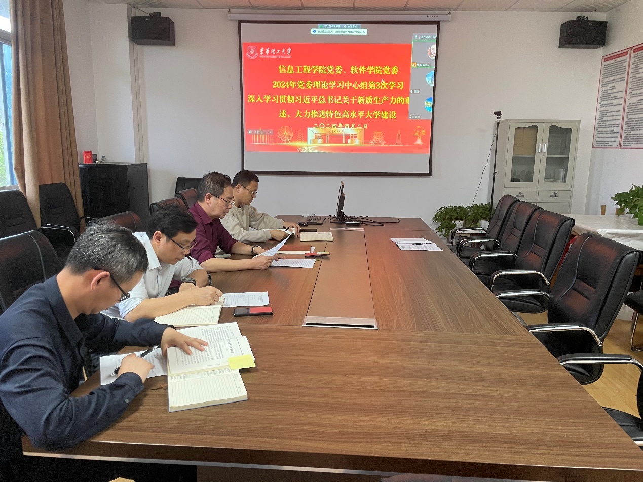 4月2日,信息工程学院党委、软件学院党委召开理论学习中心组2024年第3次学习会,专题学习贯彻习近平总书记关于新质生产力的重要论述。学院党委理论学习中心组成员参加学习会。学习会由学院党委书记许志文主持。