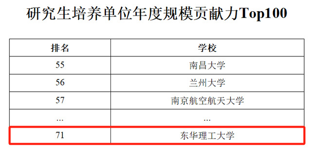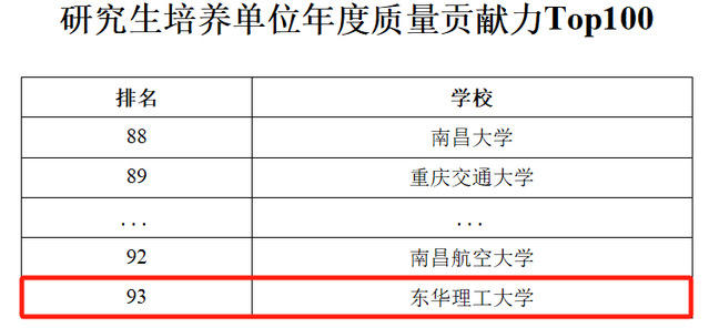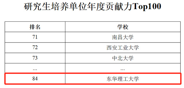近日,中国学位与研究生教育学会隆重举行了2024年度中国研究生创新实践系列大赛启动大会,会议发布了《中国研究生创新实践系列大赛2023年度报告》,重磅公布了研究生培养单位贡献力TOP100排行榜。东华理工大学在研究生培养单位年度贡献力、规模贡献力Top100排行榜上分别位居84名、71名,均位列江西省高校第二名。在研究生培养单位年度质量贡献力Top100排行榜上位居93名,位列江西省高校第三名。