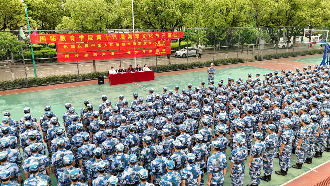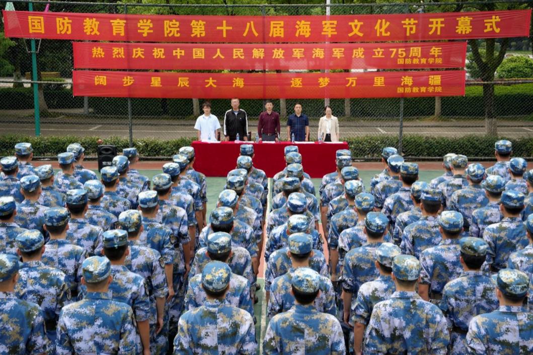 为庆祝中国人民海军成立75周年,4月24日中午13:00,国防教育学院在学府校区篮球场隆重举行以“阔步星辰大海,逐梦万里海疆”为主题的第十八届“海军文化节”开幕式。开幕式由学院党政办公室主任曹燕主持,全体师生参与。