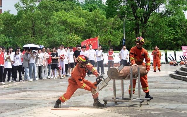 活动现场设置了应急装备展示区、救援演示区和防灾减灾科普宣传长廊。在场师生聆听了消防员对灭火救援装备、水域救援装备和通信装备的科普讲解,观看了森林火灾扑救“以水灭火”战法演示,风机、油锯等灭火机具使用演示,背负式脉冲水枪、高压细雾水枪实战演示等,还亲身体验了心肺复苏等救援项目。