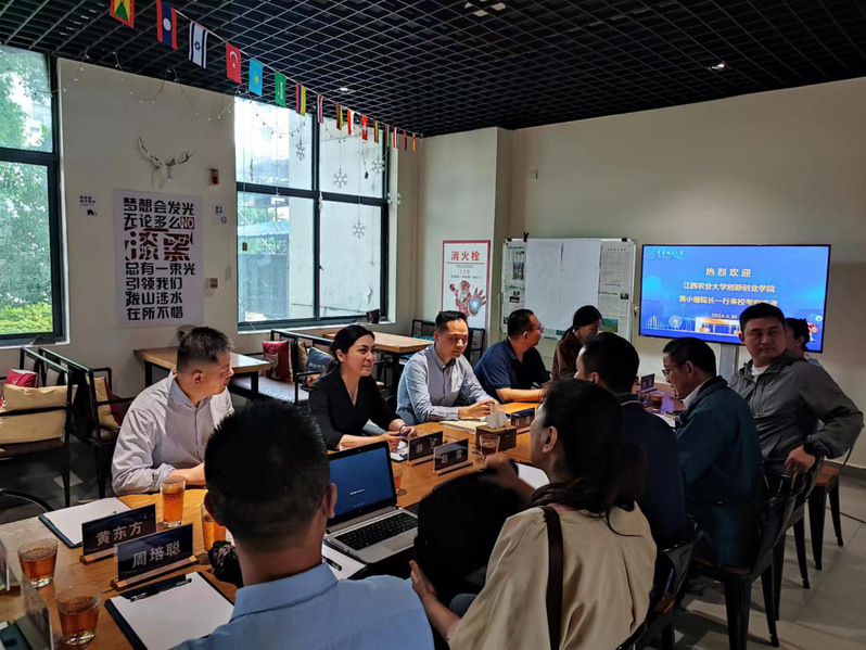 近日,江西农业大学创新创业学院院长黄小珊、副院长赵雷、校团委副书记王成斌一行来院调研大学生创新创业教育工作。创新创业教育学院院长游艺、校团委副书记肖昆及学院相关工作负责老师参加座谈交流。
