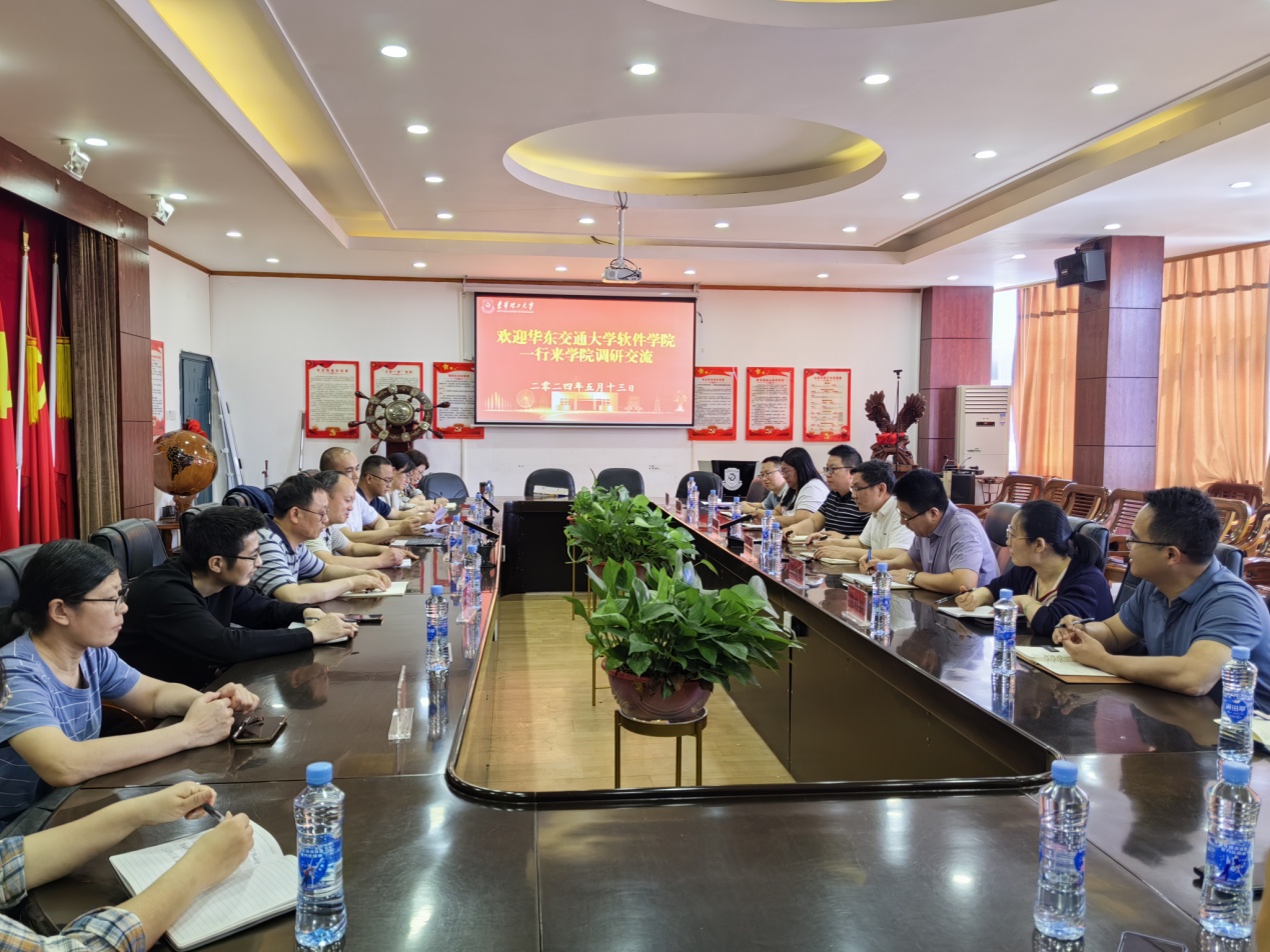 5月13日上午,华东交通大学软件学院副院长张利华、罗国亮一行9人来我院开展教学调研交流活动,学院副院长李祥、张军、教学系主任和部分骨干老师参加了座谈。会议由张军主持。