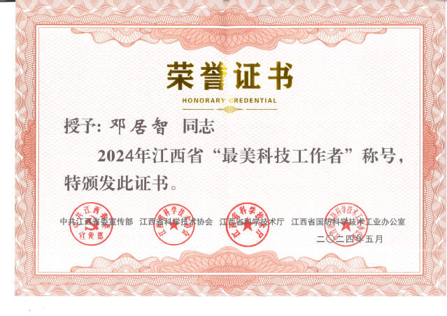 据悉,江西省“最美科技工作者”评选活动由中共江西省委宣传部、江西省科学技术协会、江西省科学技术厅、江西省国防科学技术工业办公室联合主办,自2019年以来已连续举办5届,旨在表彰在科研领域取得显著成绩、展现出新时代科技工作者使命担当和精神风貌的优秀科技工作者。本次评选经广泛动员、基层推荐、资格审核、专家评审和社会公示等程序,最终评选产生了20名2024年江西省“最美科技工作者”。(文/图 胡泽芹)