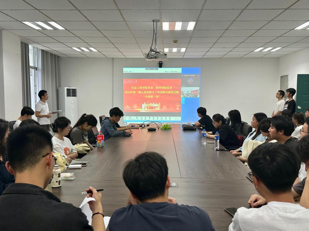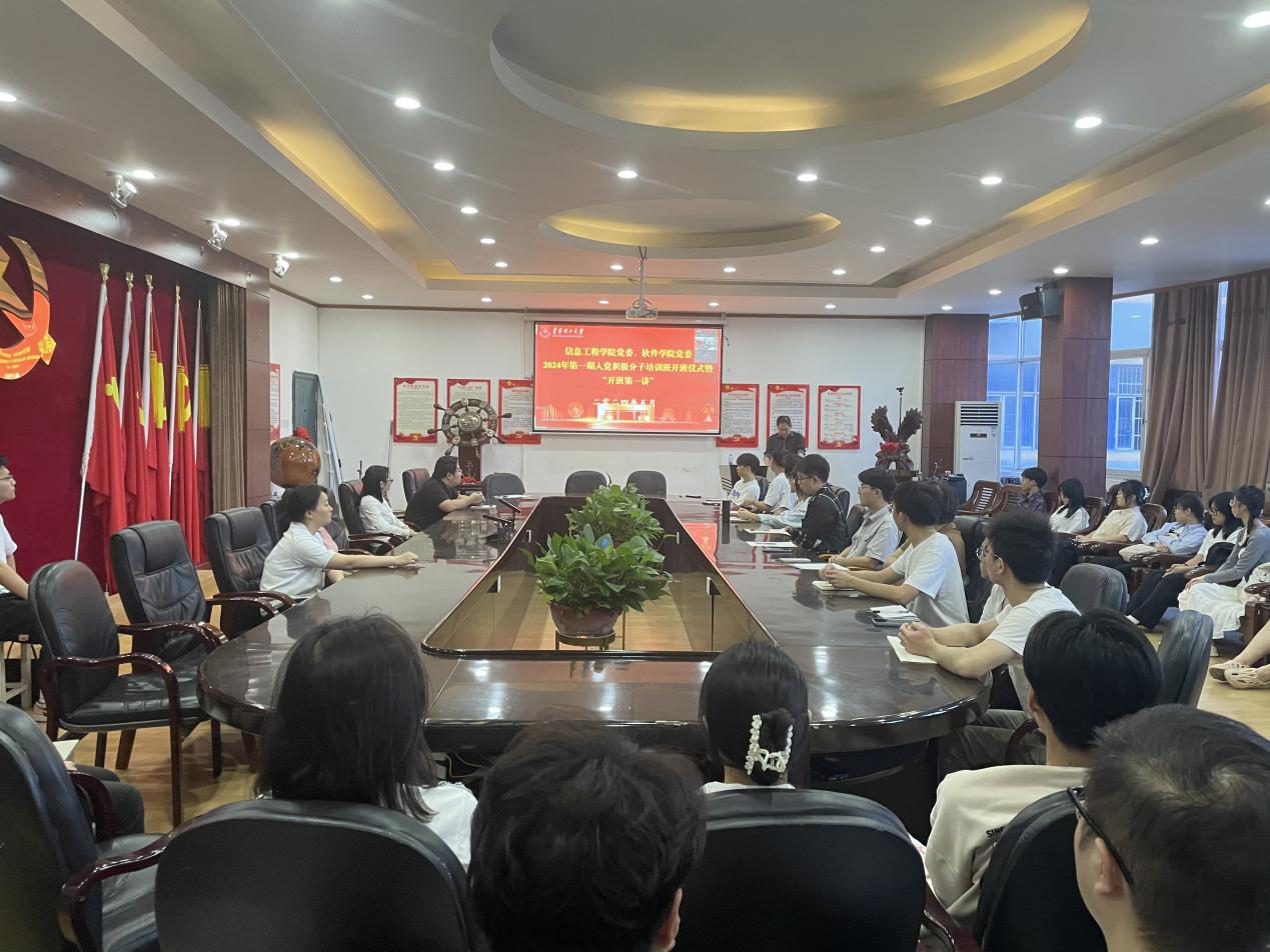 为深入贯彻新时代党的组织路线,做好新时代党员发展和教育工作,扎实开展党纪学习教育,5月15日晚,信息工程学院、软件学院2024年第一期入党积极分子培训班开班仪式暨党课第一讲在南昌校区软件楼316室、抚州校区国防科技楼1114室同步召开。学院党委书记许志文、全体学生党支部书记以及本期培训班全体学员共计150余人参加开班仪式,开班仪式由软件学院党委组织员周勇主持。
