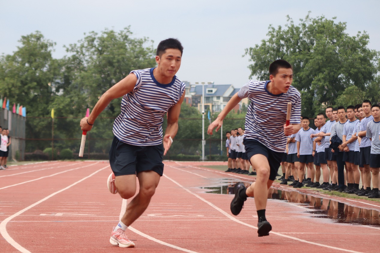 在10x400米接力赛中,参赛队员风驰电掣,接力棒在队员手中疾速传递,速度与技术完美融合,喝彩声响彻田径场,最终23中队取得了胜利。