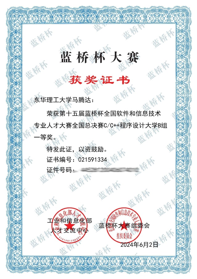 近日,第十五届“蓝桥杯”全国软件和信息技术专业人才大赛(简称“蓝桥杯”大赛)全国总决赛获奖名单揭晓。我院学生马腾达荣获C/C++程序设计大赛B组全国一等奖,17名学生分别荣获2项二等奖、6项三等奖和9项优胜奖,取得了我院参加该项赛事以来新的成绩突破。